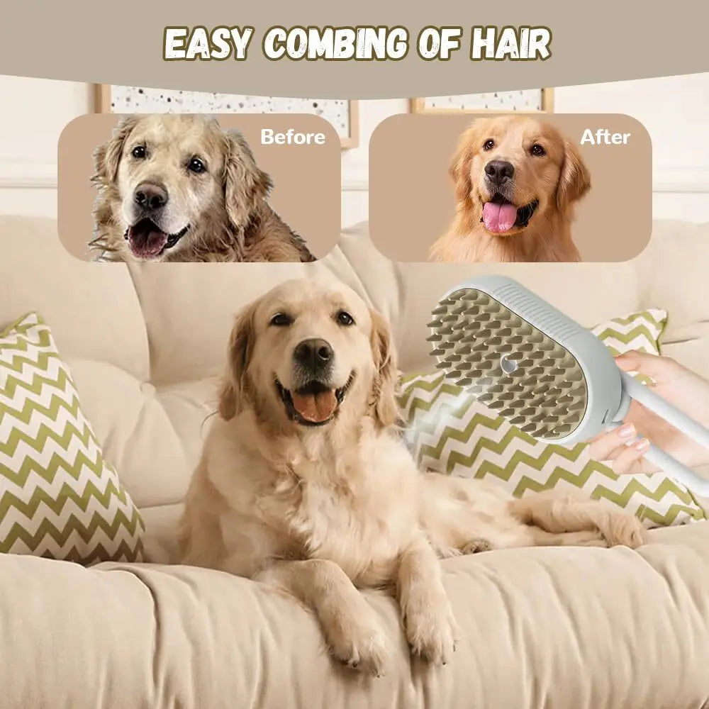 4-in-1 Steam Brush for Cats & Dogs - Grooming Tool with Vibration Massage,